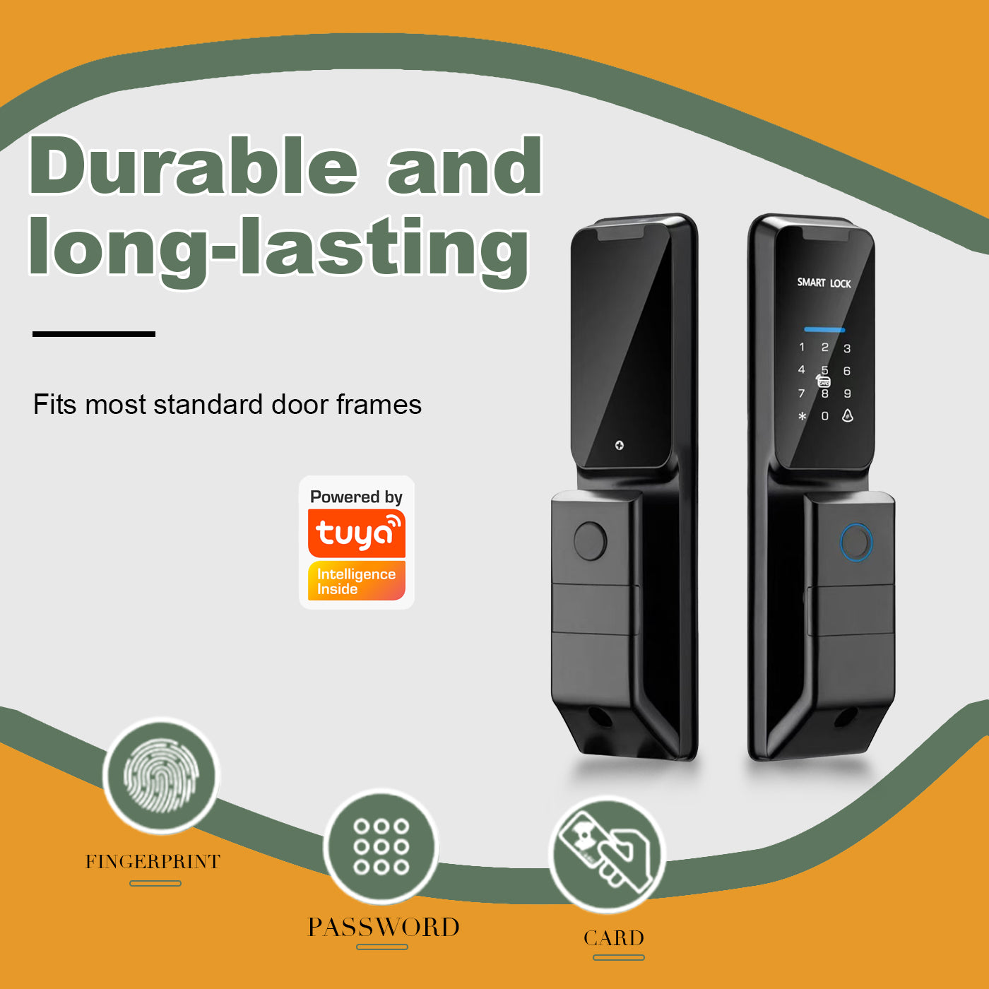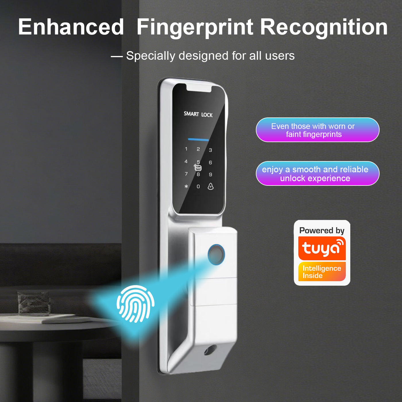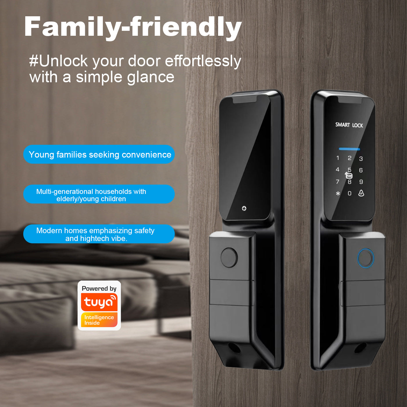 1. Pengenalan dan pembukaan kunci sidik jari canggih: Kunci pintu elektronik pintar ini menawarkan berbagai metode pembukaan kunci, termasuk sidik jari, pengenalan wajah, kata sandi, kartu, kunci, dan kontrol aplikasi. Hal ini memastikan akses yang mudah sekaligus menjaga tingkat keamanan yang tinggi.